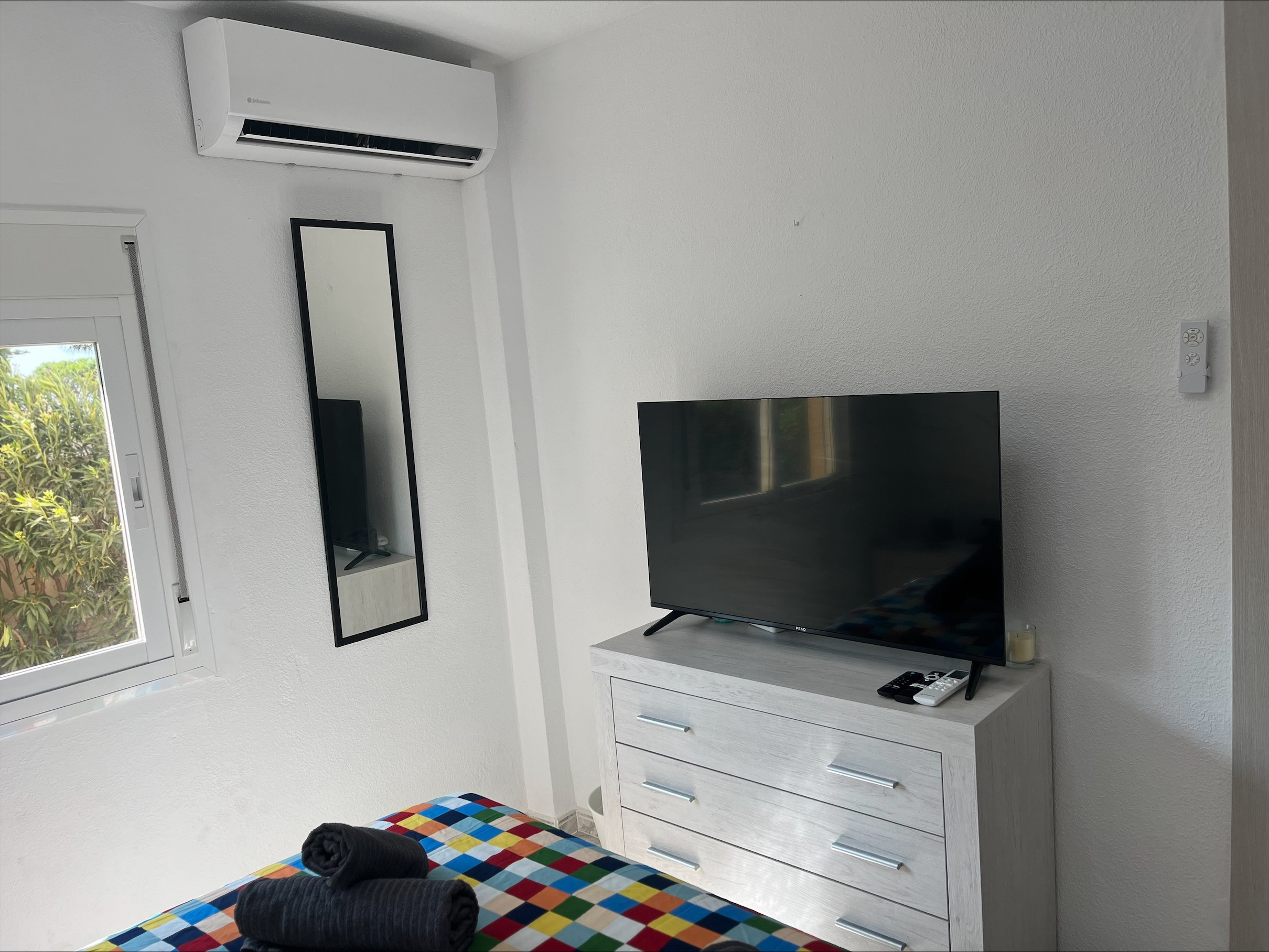 Appartement à La Cala de Mijas qui possède 2 chambre(s) et Capacité pour 4 personnes. Logement de 50 m². Elle dispose de ascenseur, clôture, 5 m² de terrasse, lave-linge, fer à repasser, accès internet (wifi), sèche-cheveux, chauffage pompe à chaleur, climatisation, piscine collective, parking extérieur bâtiment proche, 3 ventilateurs, 2 Télévisions, radio. La cuisine indépendante, à induction, est équipée avec réfrigérateur, micro-ondes, four, congélateur, vaisselle/couverts, ustensiles/cuisine, cafetière, grille pain et bouilloire.