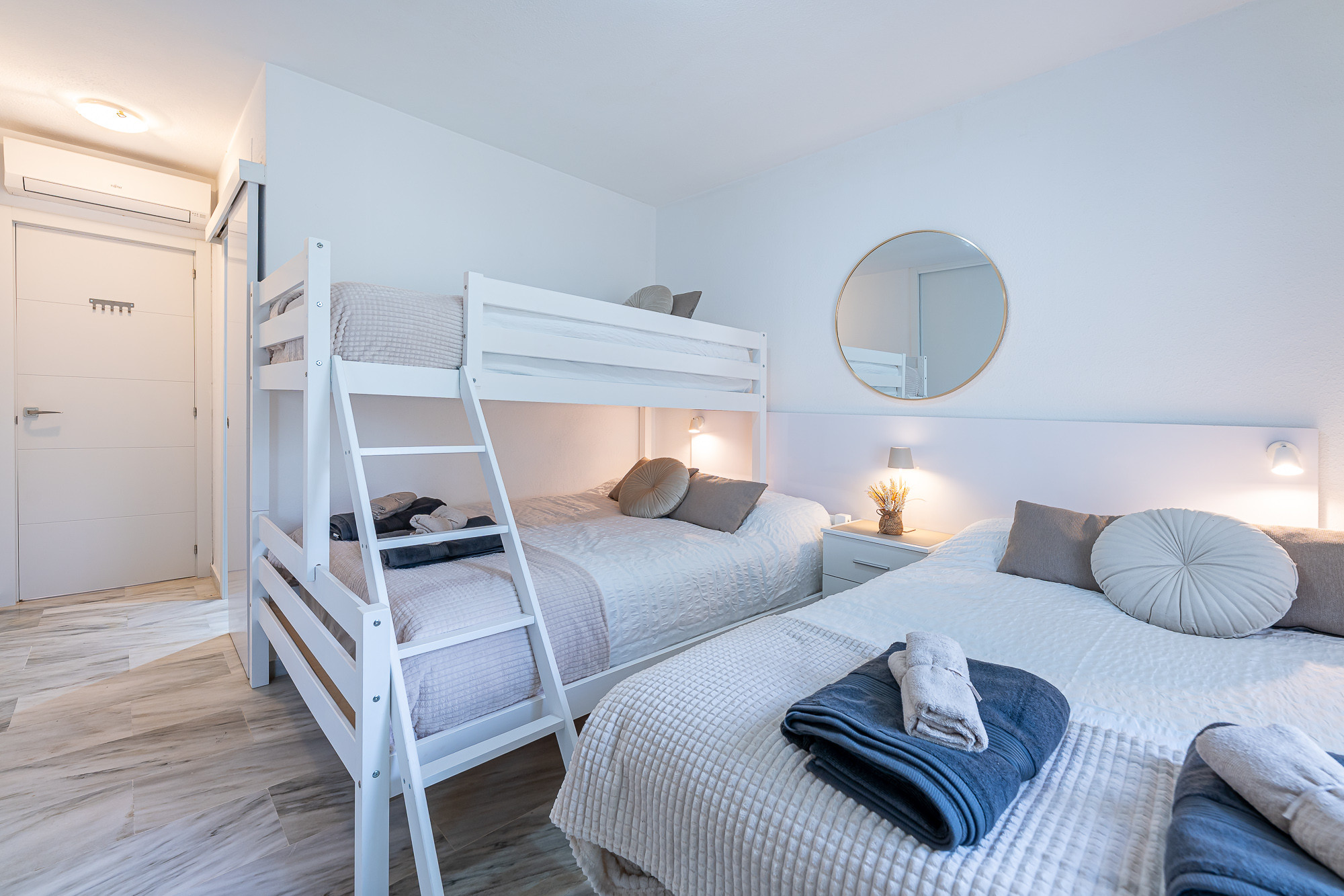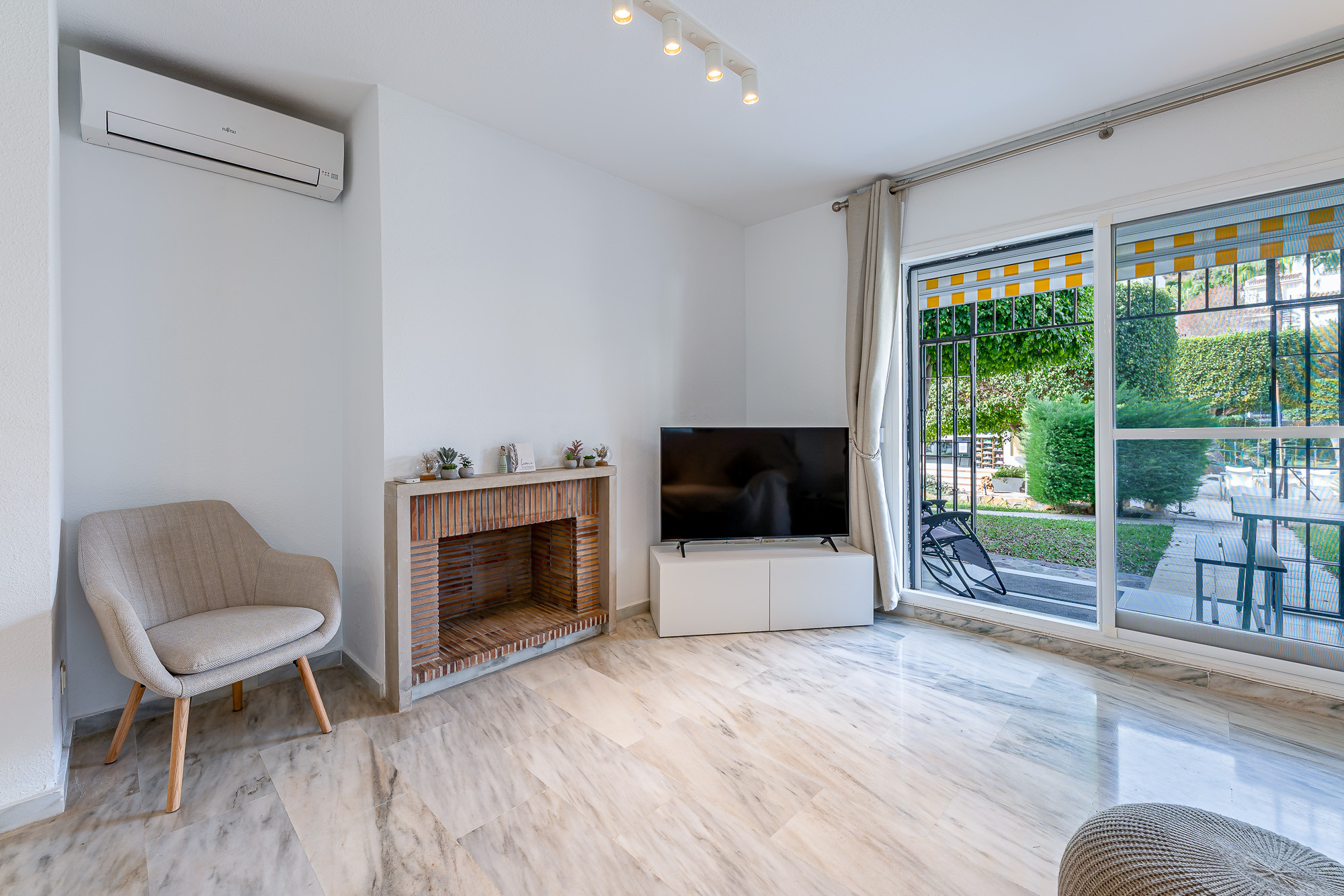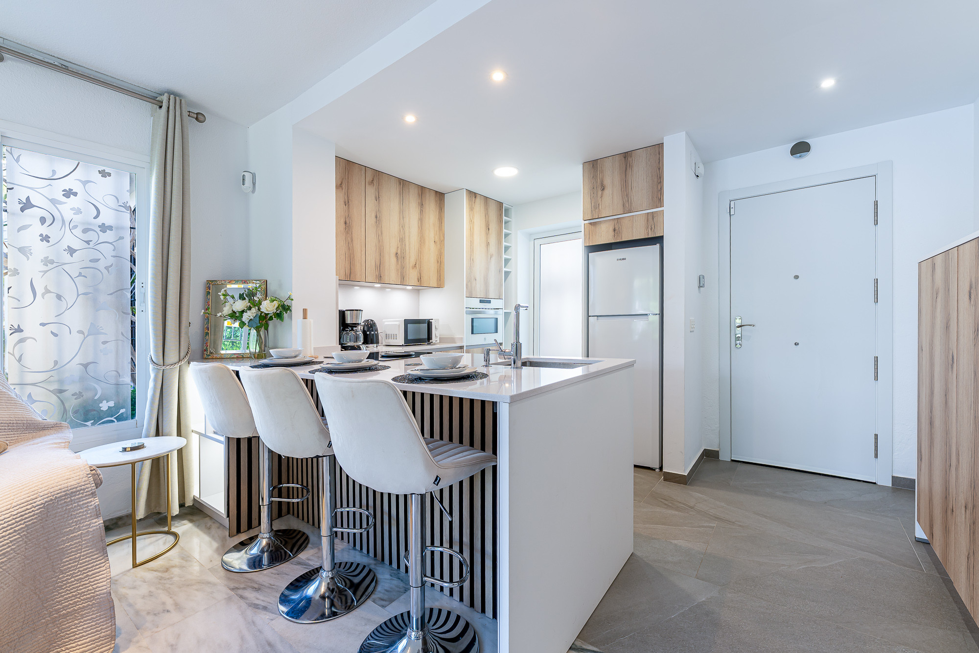 Appartement à Mijas Costa qui possède 2 chambre(s) et Capacité pour 6 personnes. Logement de 89 m². Elle dispose de jardin, mobilier de jardin, 8 m² de terrasse, lave-linge, fer à repasser, accès internet (wifi), sèche-cheveux, chauffage pompe à chaleur, climatisation, piscine collective+infantile, parking extérieur bâtiment proche, moustiquaires dans tout le logement, 1 Télévision.La cuisine américaine, à induction, est équipée avec réfrigérateur, micro-ondes, four, congélateur, lave-vaisselle, vaisselle/couverts, ustensiles/cuisine, cafetière, grille pain et bouilloire.