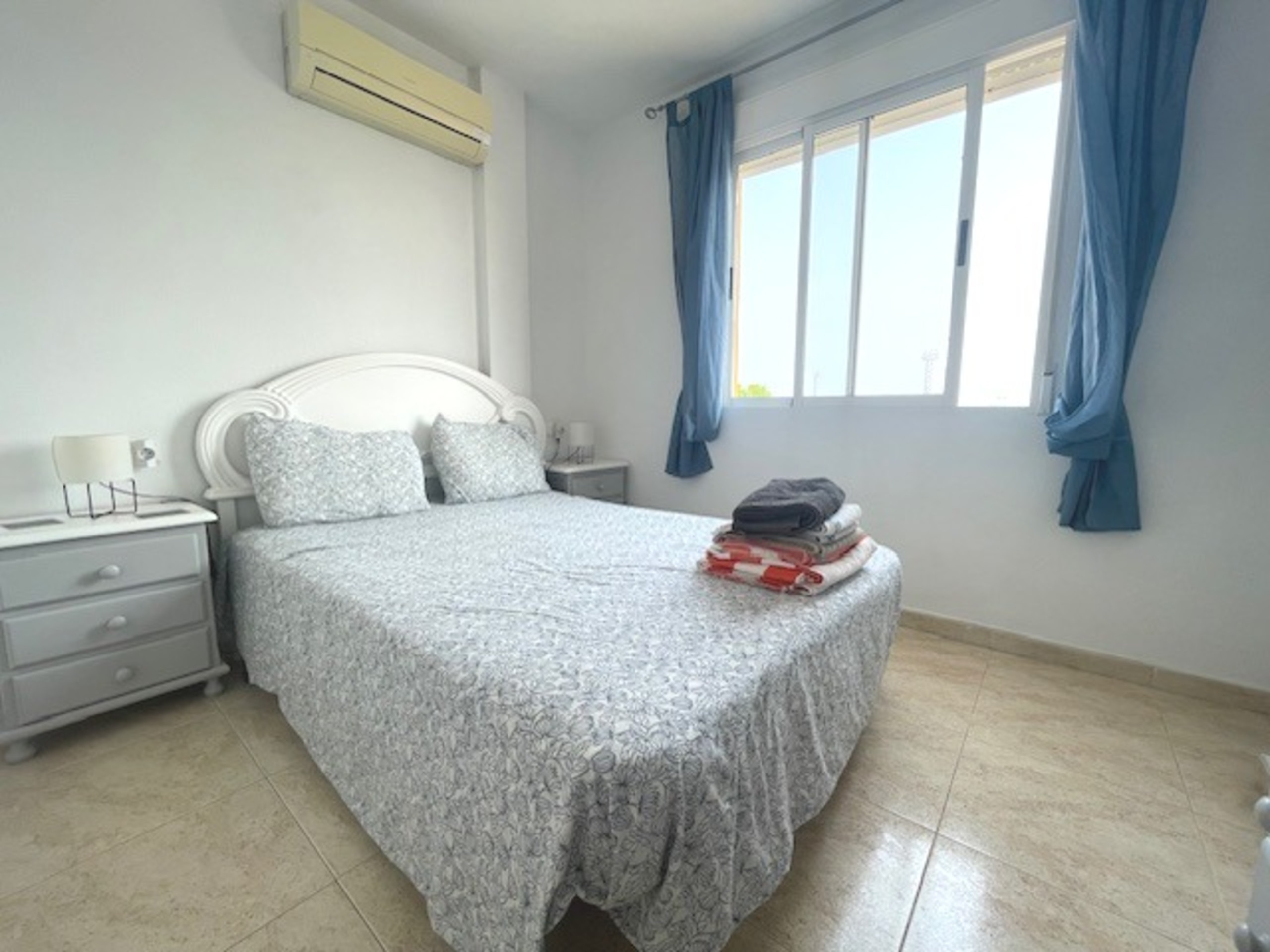 Appartement à Orihuela Costa qui possède 2 chambre(s) et Capacité pour 4 personnes. Logement de 55 m². Elle dispose de terrasse, lave-linge, fer à repasser, accès internet (wifi), sèche-cheveux, balcon, climatisations dans certaines chambres, piscine collective, parking extérieur même bâtiment, 1 Télévision. La cuisine, est équipée avec réfrigérateur, micro-ondes, four, congélateur, vaisselle/couverts, ustensiles/cuisine, cafetière, grille pain et bouilloire.